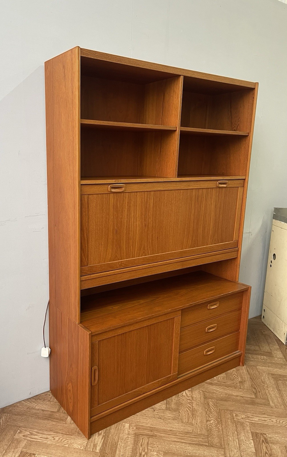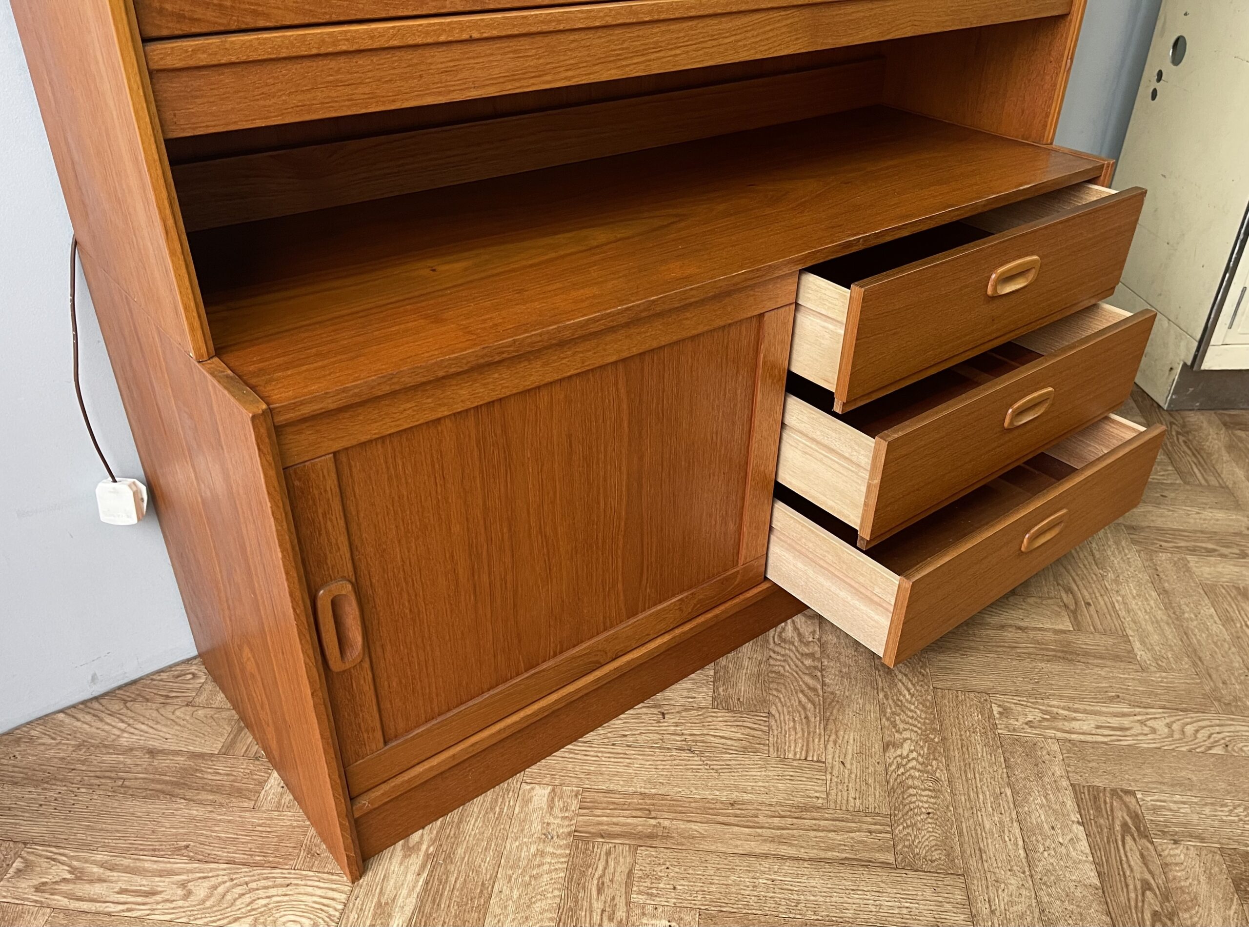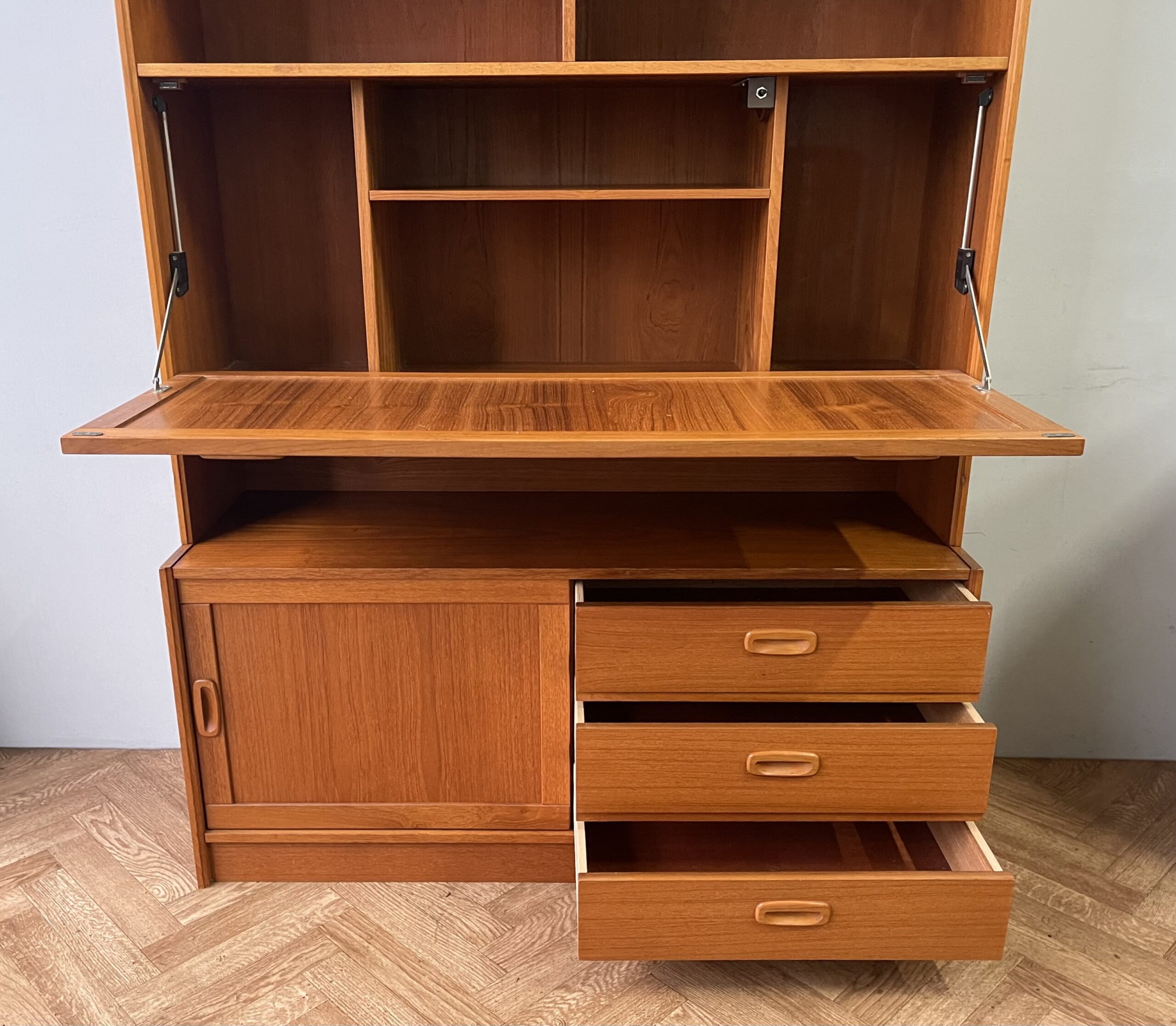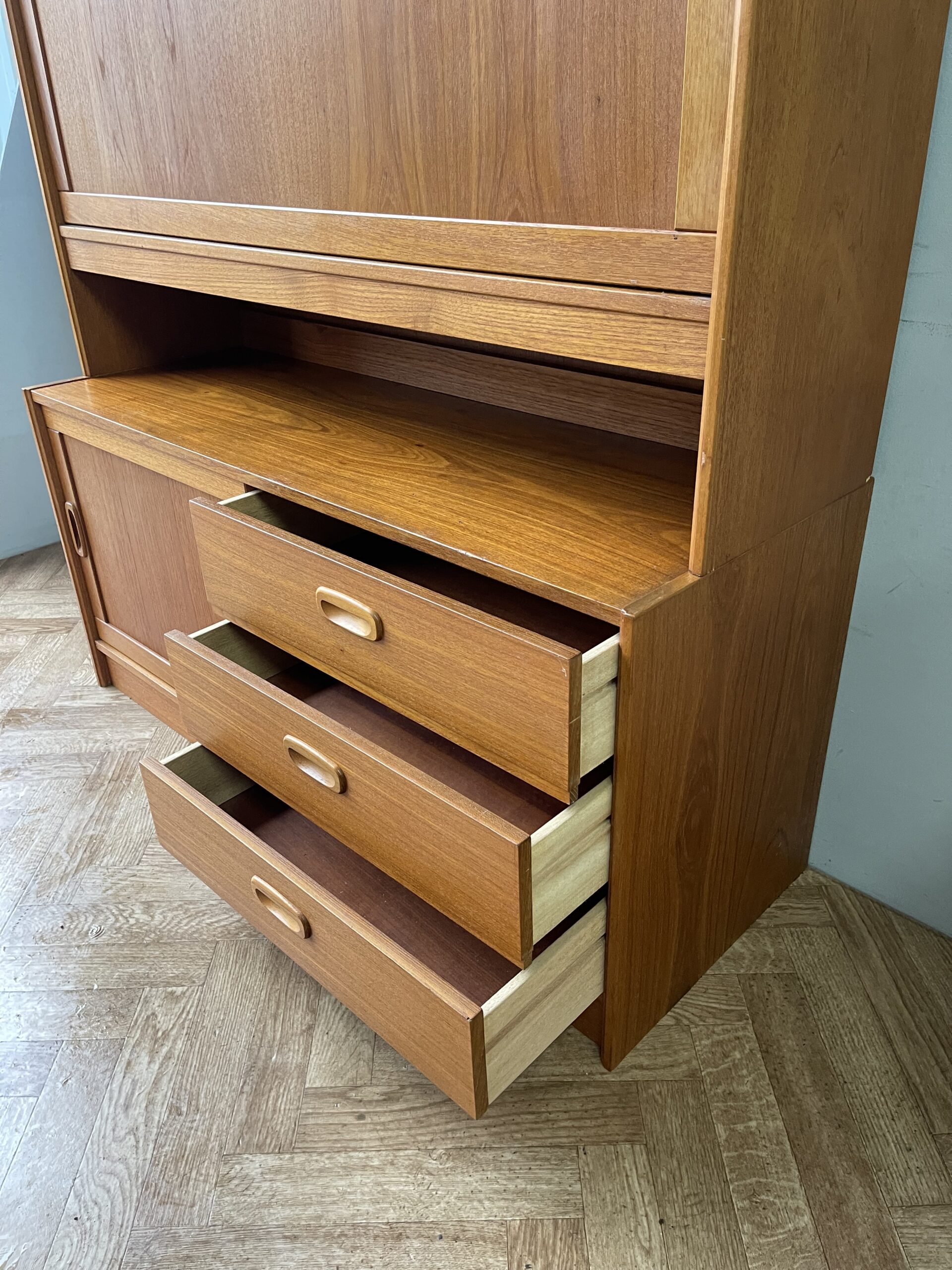 Danish Mid Century Vintage Teak Wall Unit Sideboard Drinks Cabinet Drawers