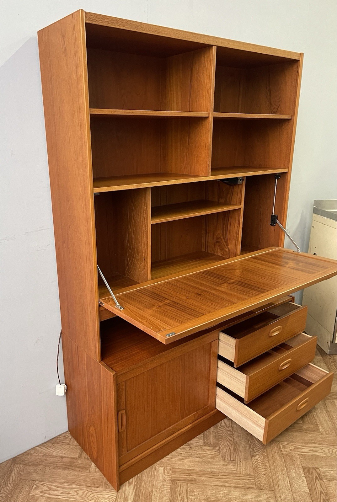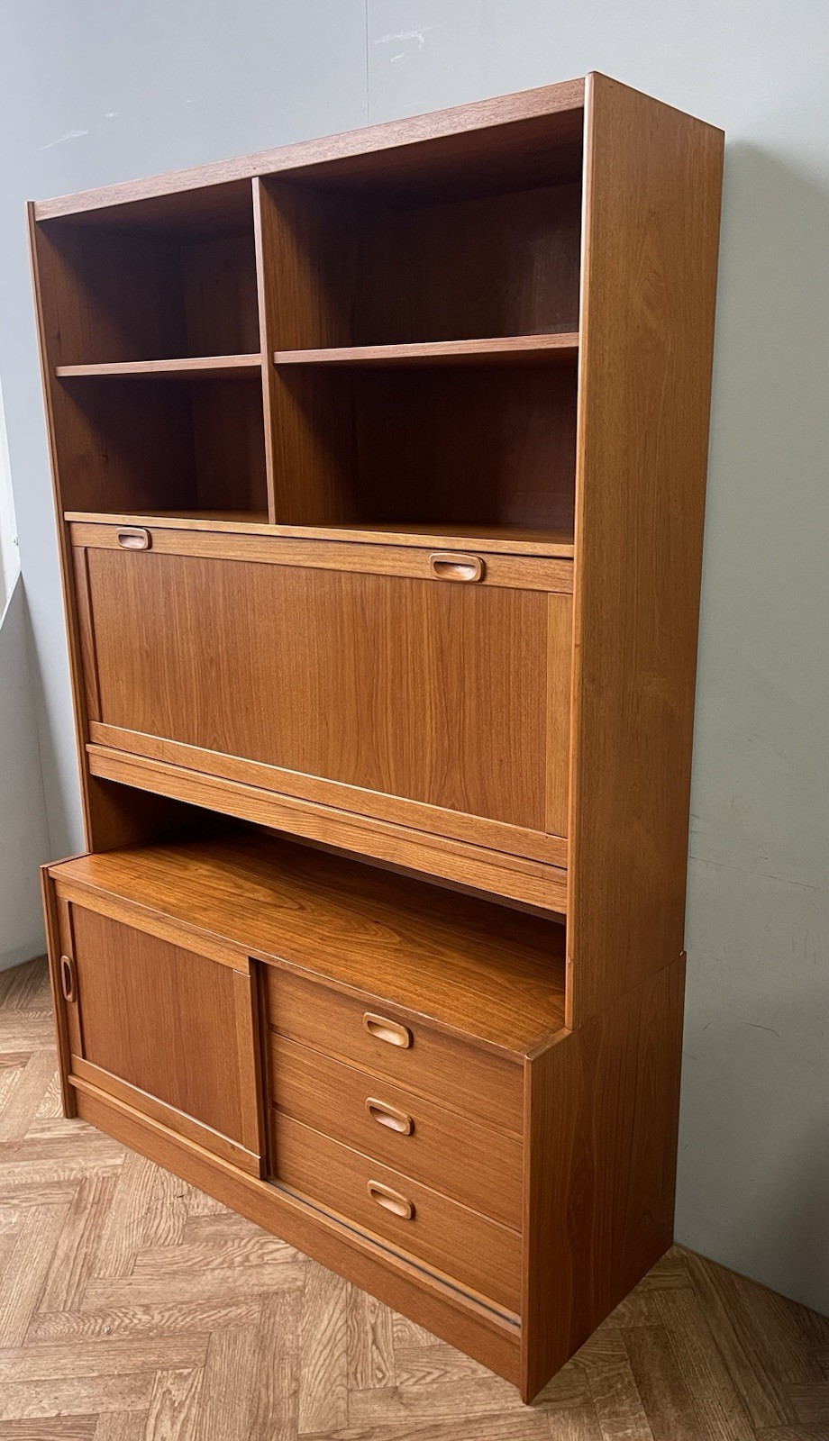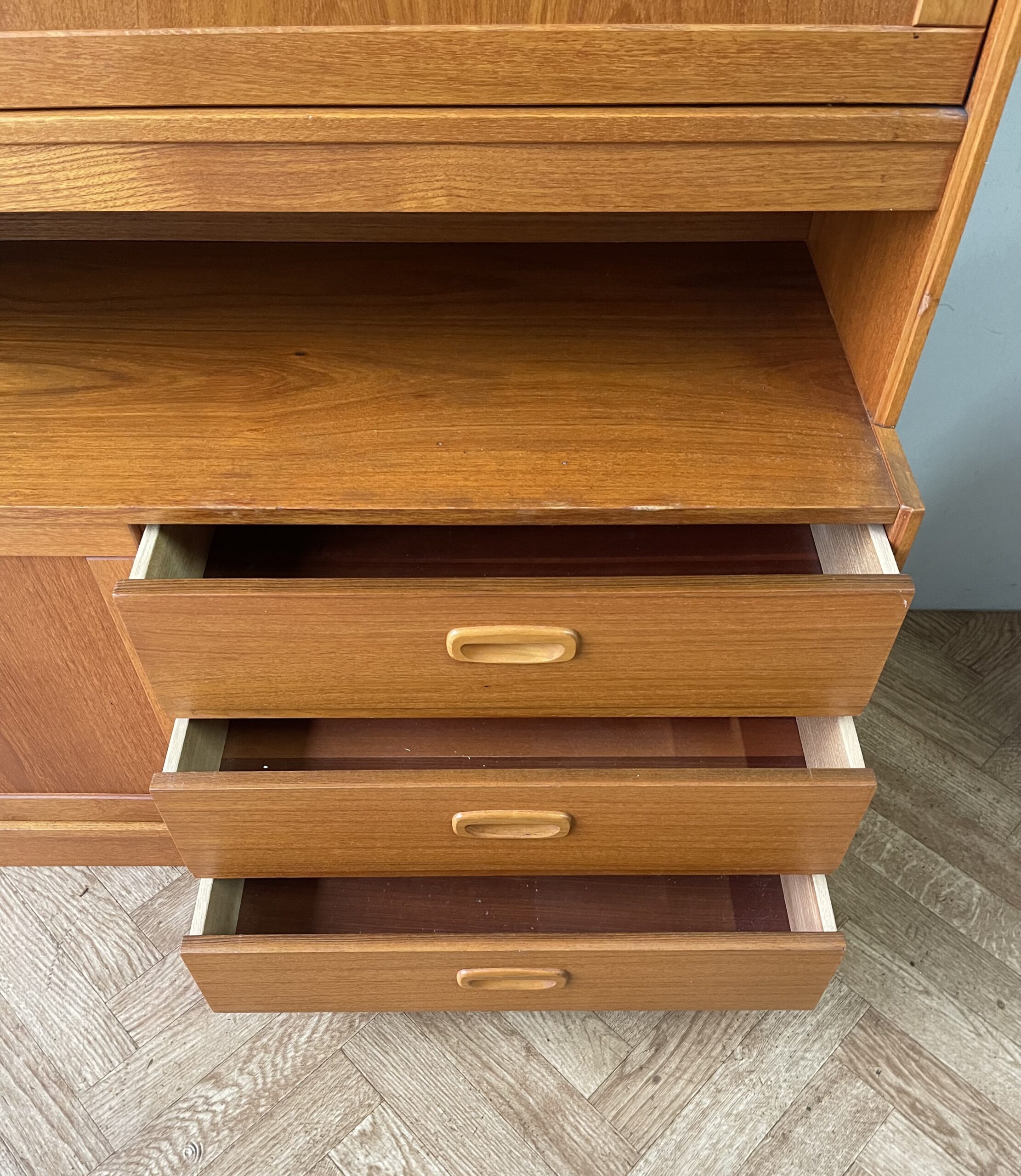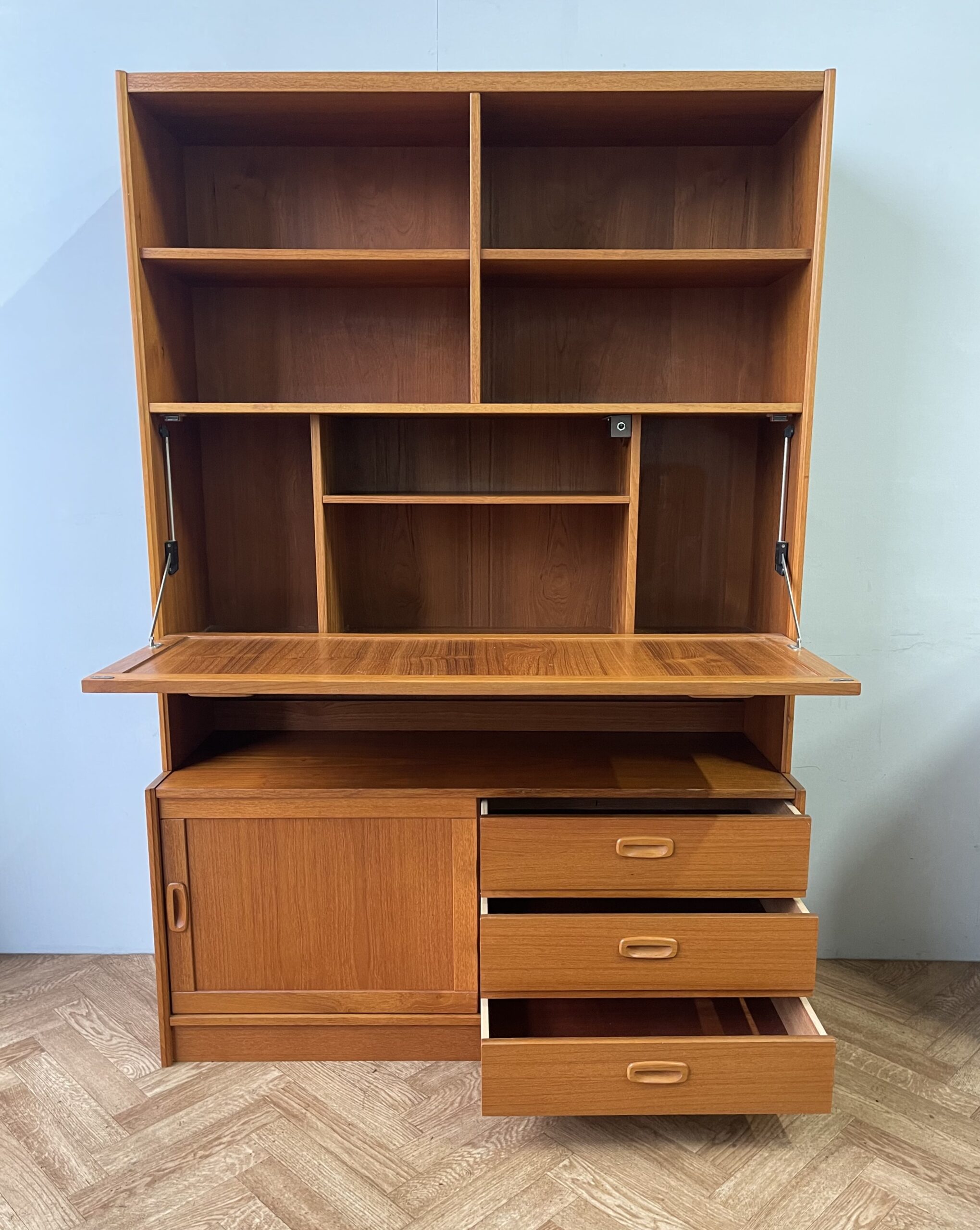 Danish Mid Century Vintage Teak Wall Unit Sideboard Drinks Cabinet Drawers