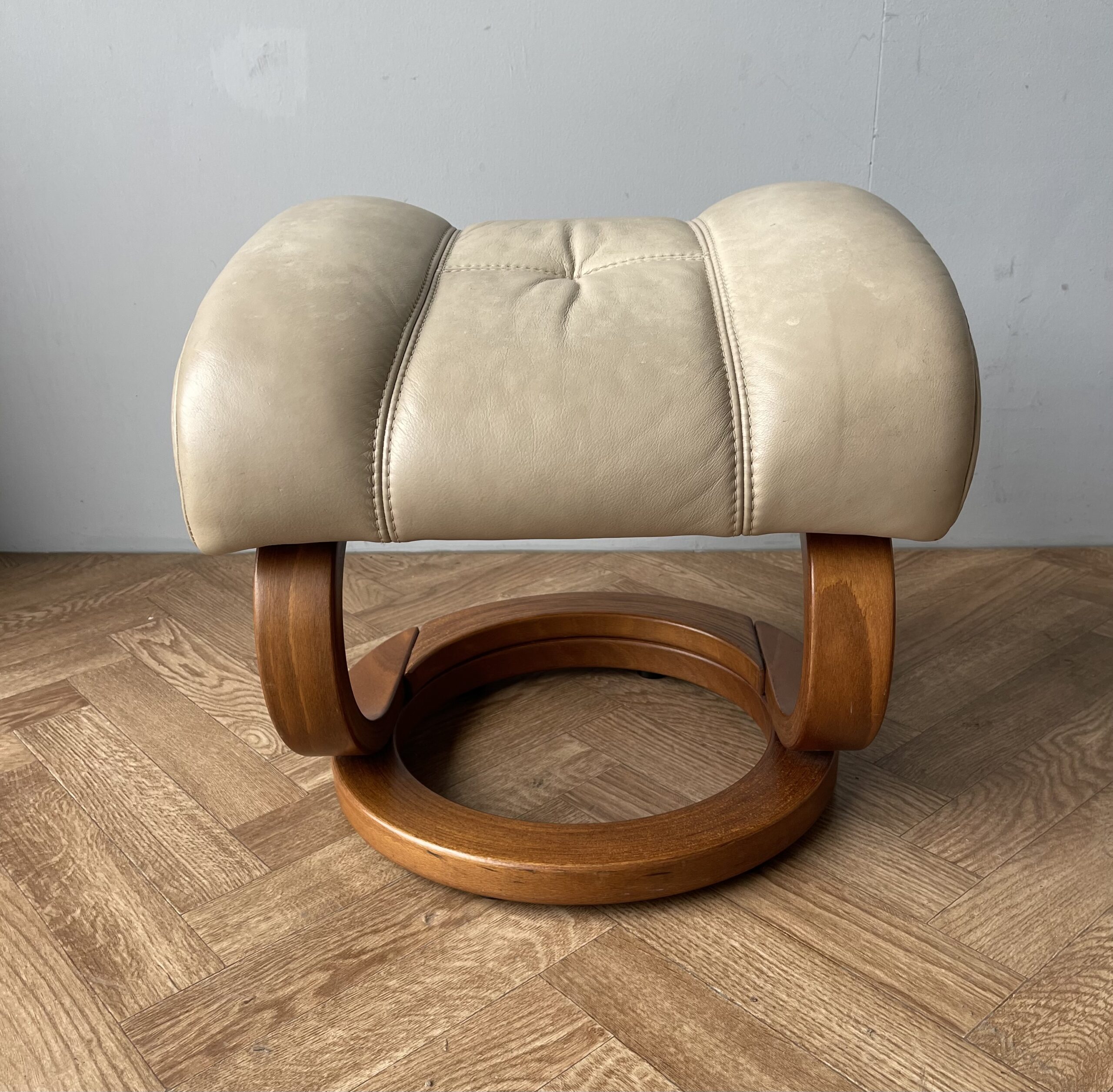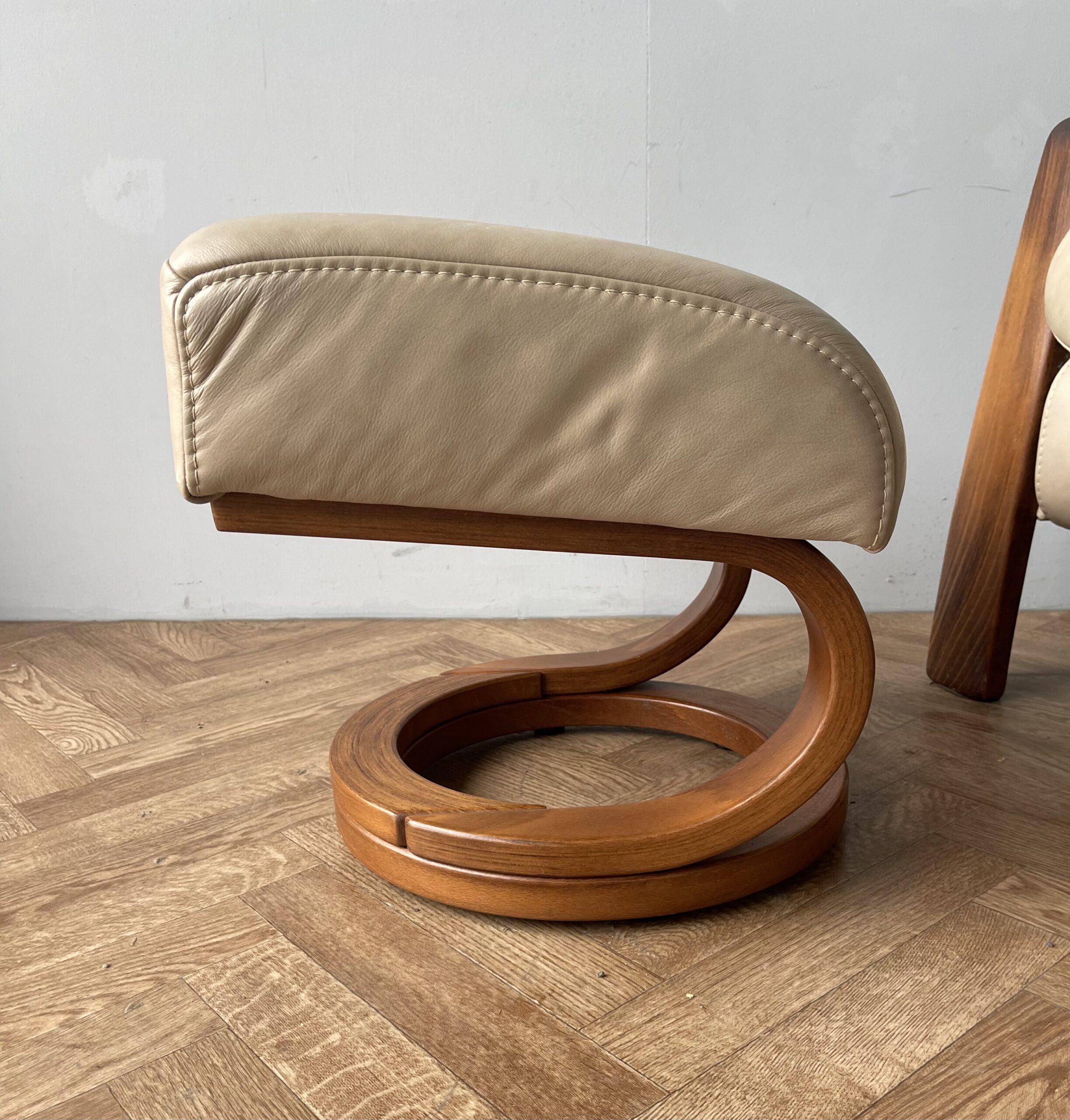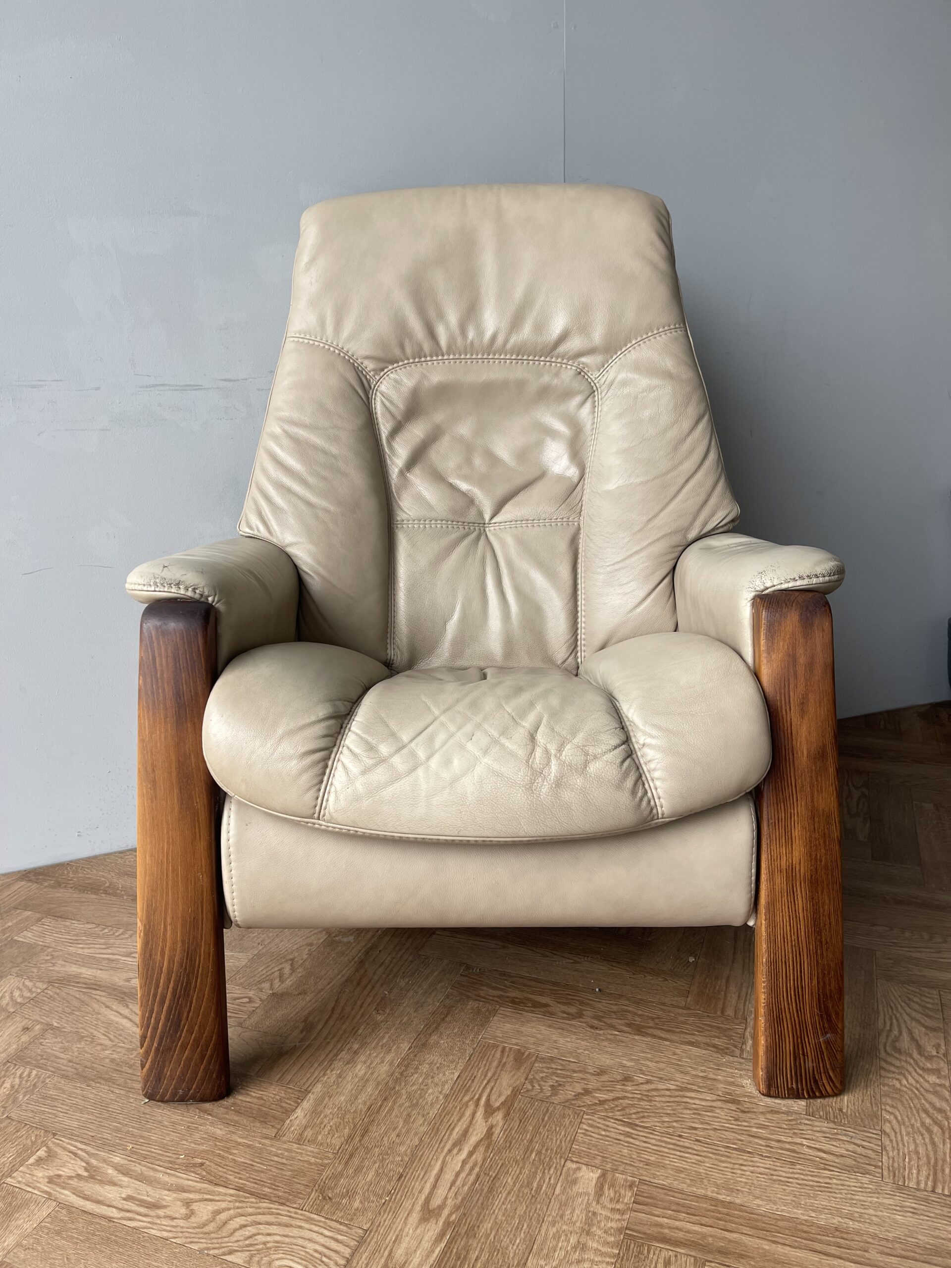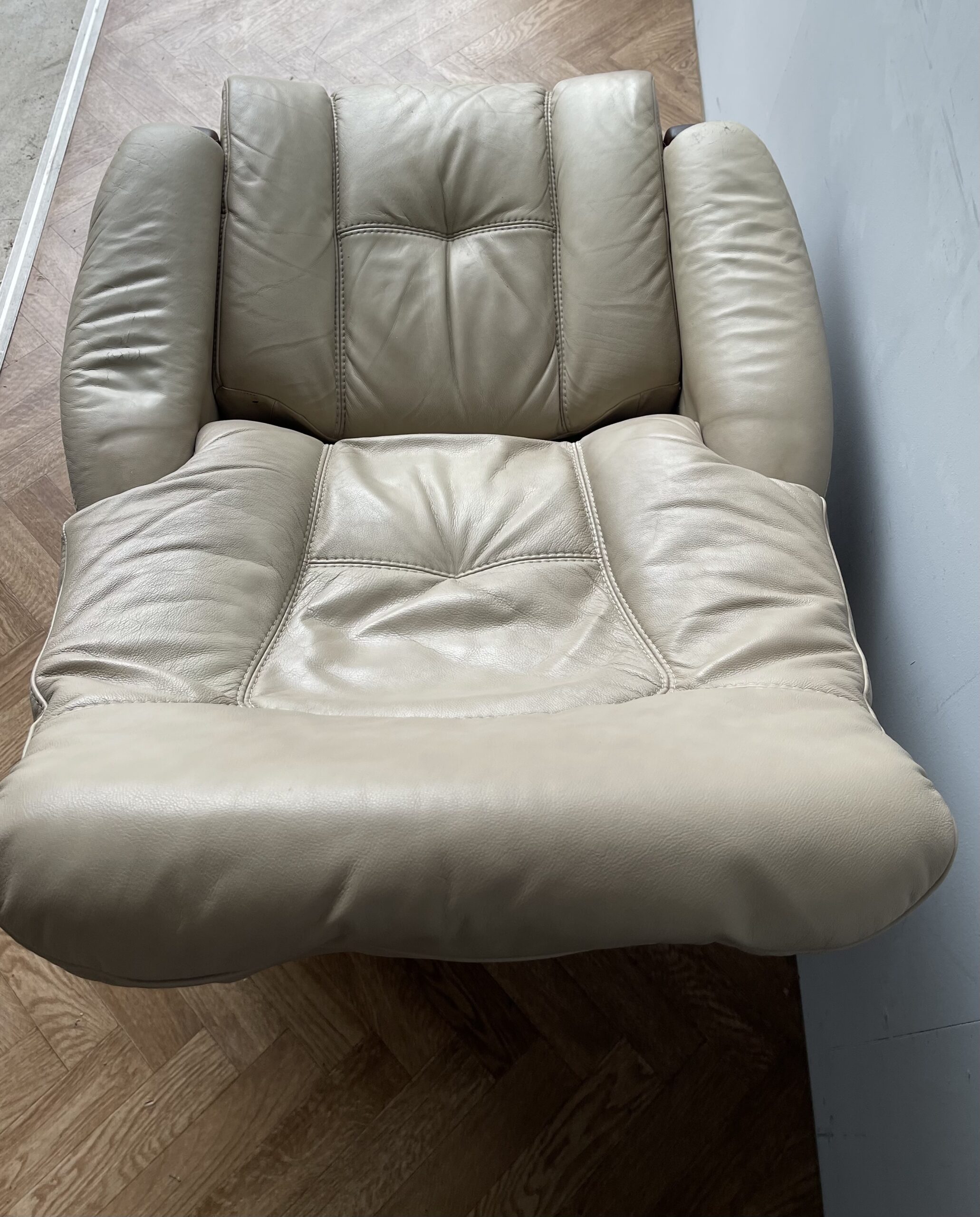 Himolla Thesme leather and wooden reclining armchair with footstool. Incredibly comfortable chair. Cost over £2000 new.