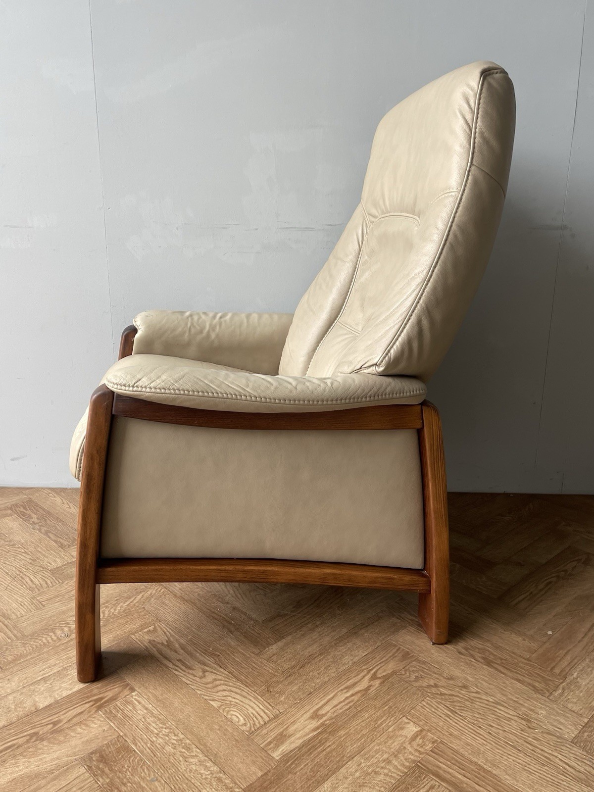 Himolla Themse Reclining Leather and Wooden Armchair With Footstool