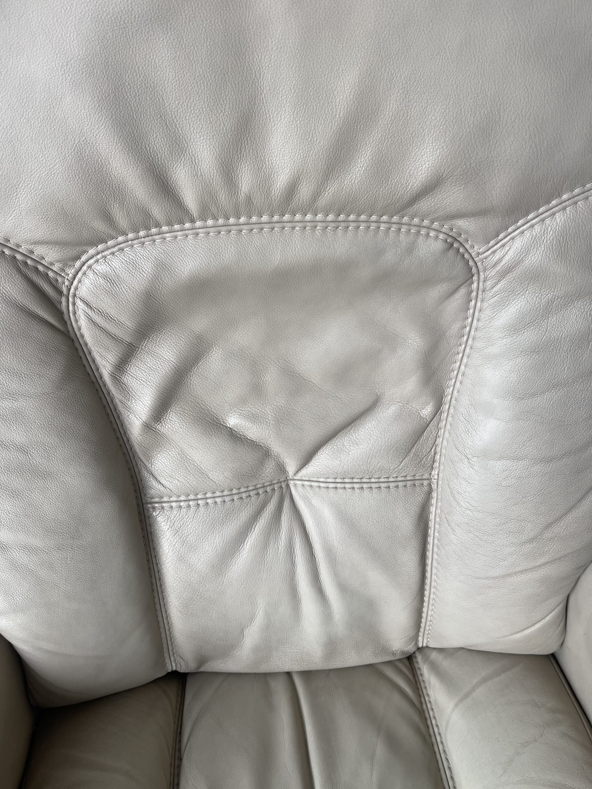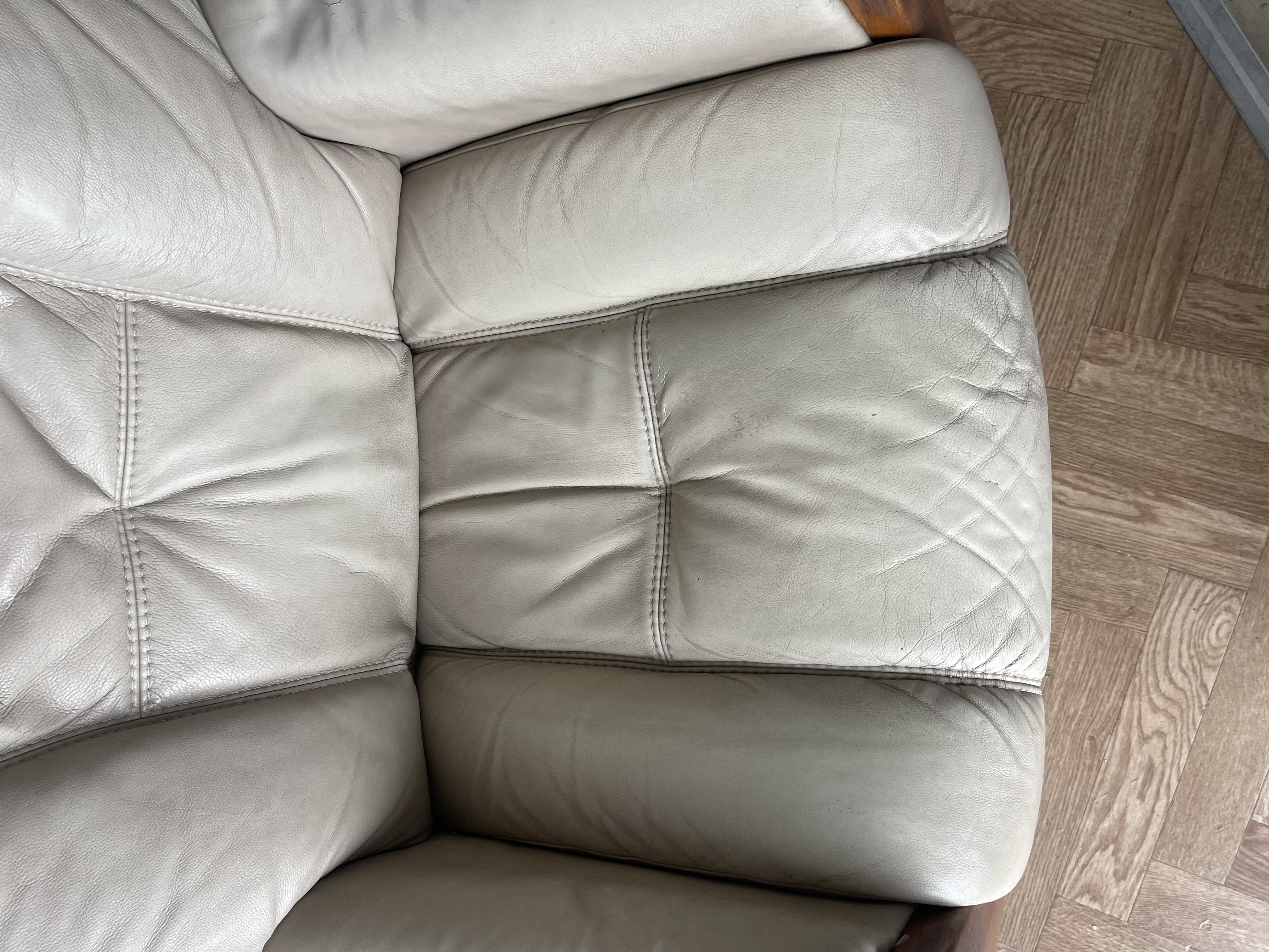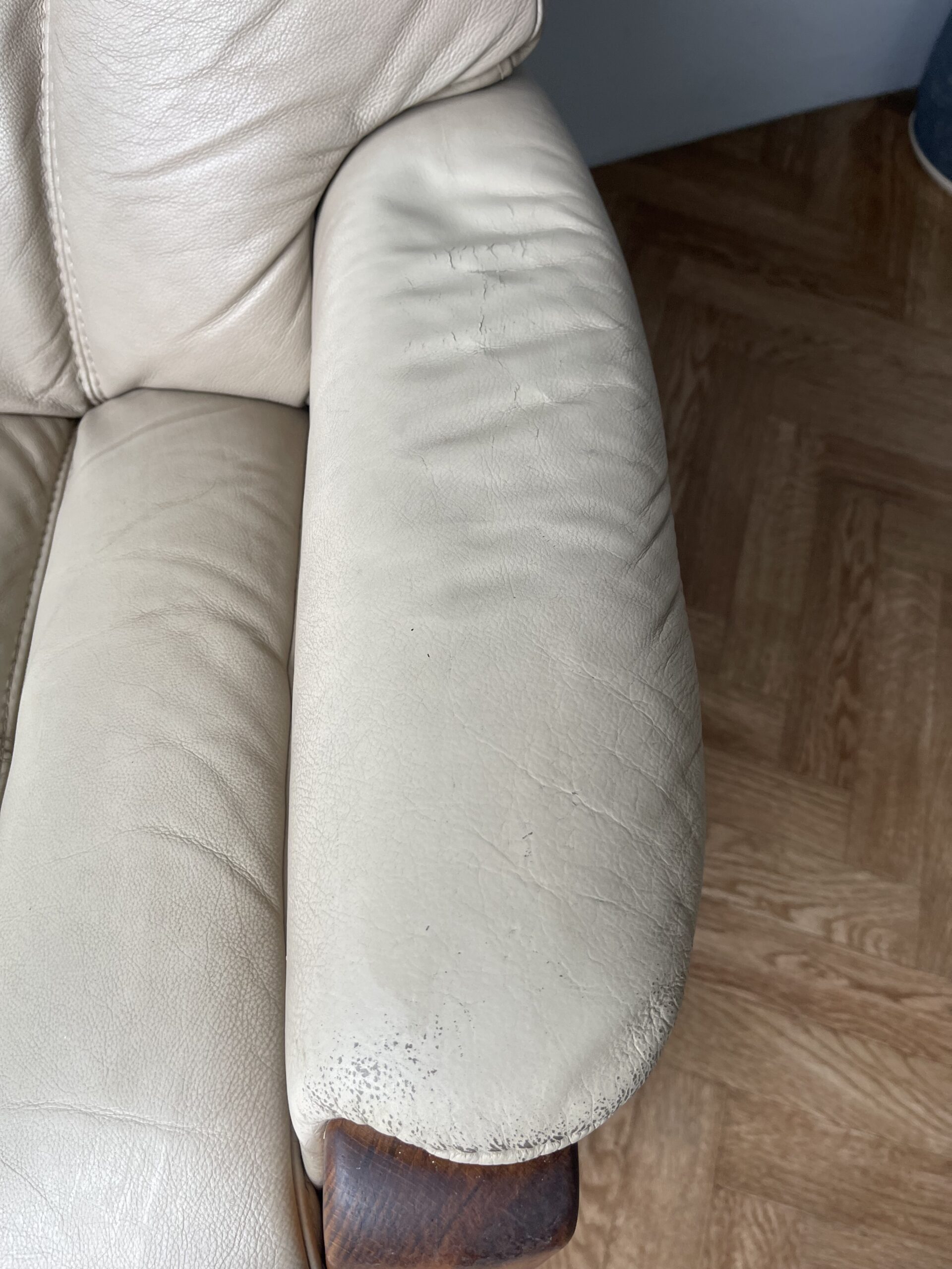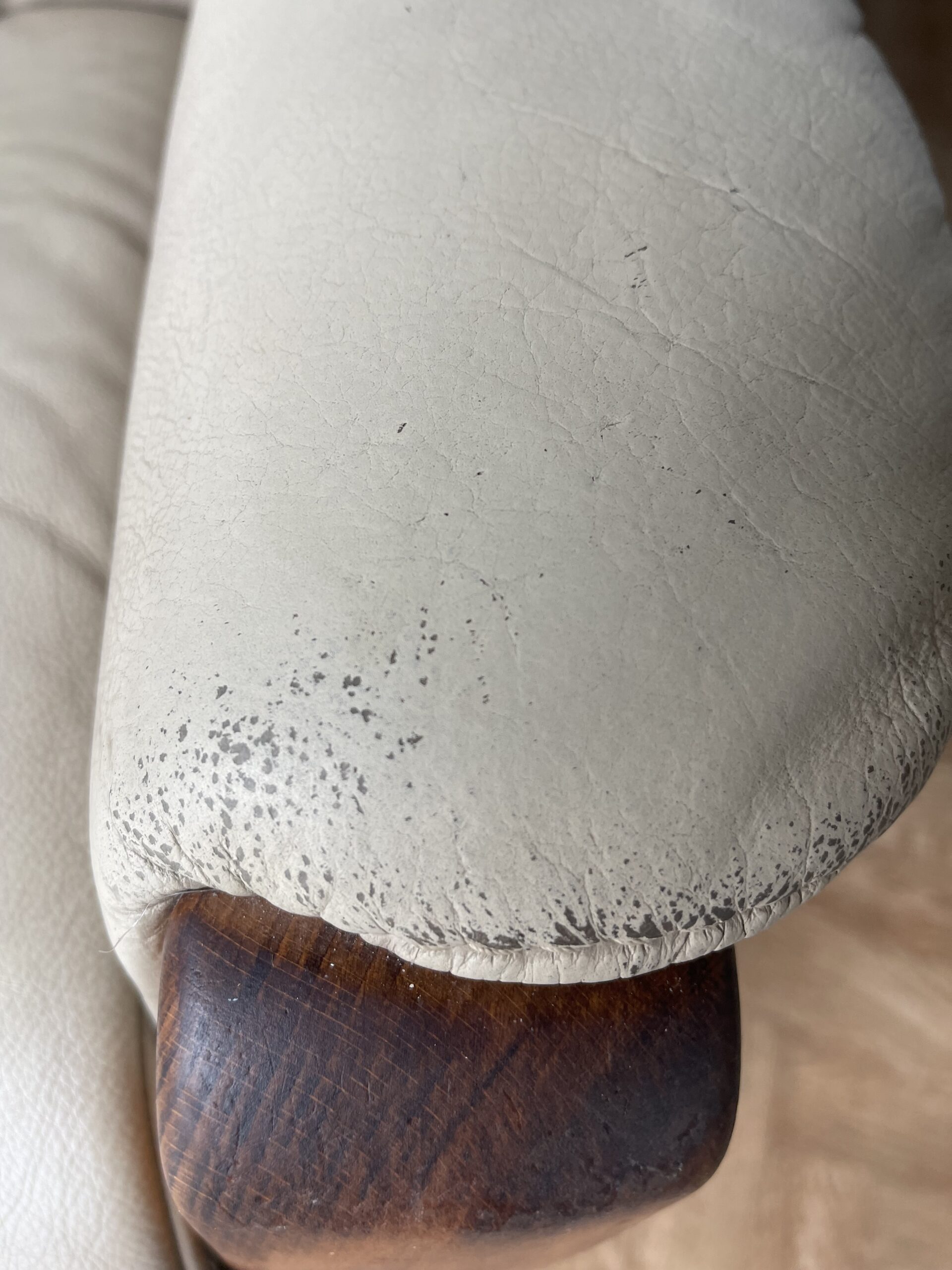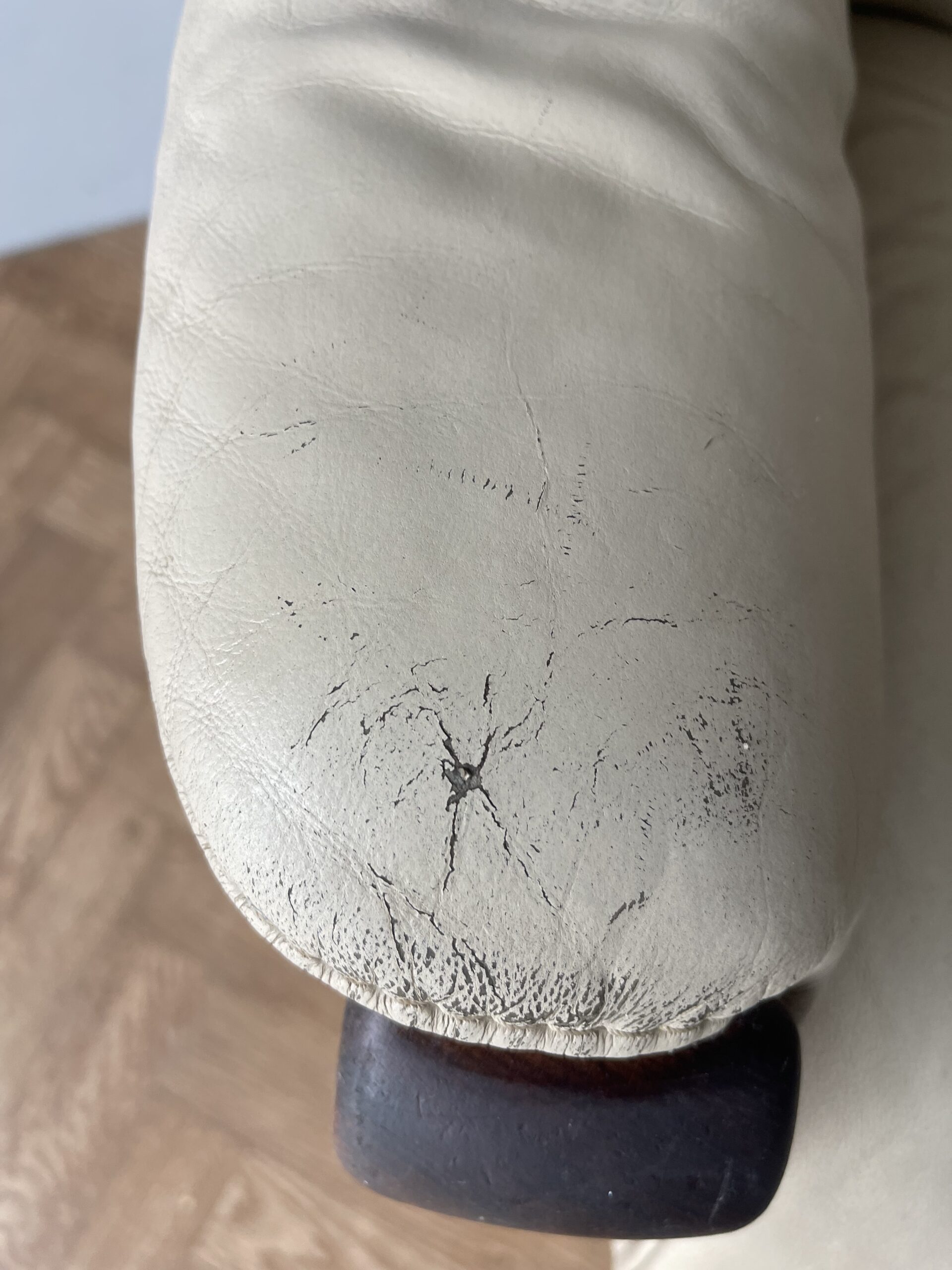 There are some signs of wear, some scuffs, marks and wear to the leather. This gives the chair a lovely patina. Please see photos these form part of the item description.