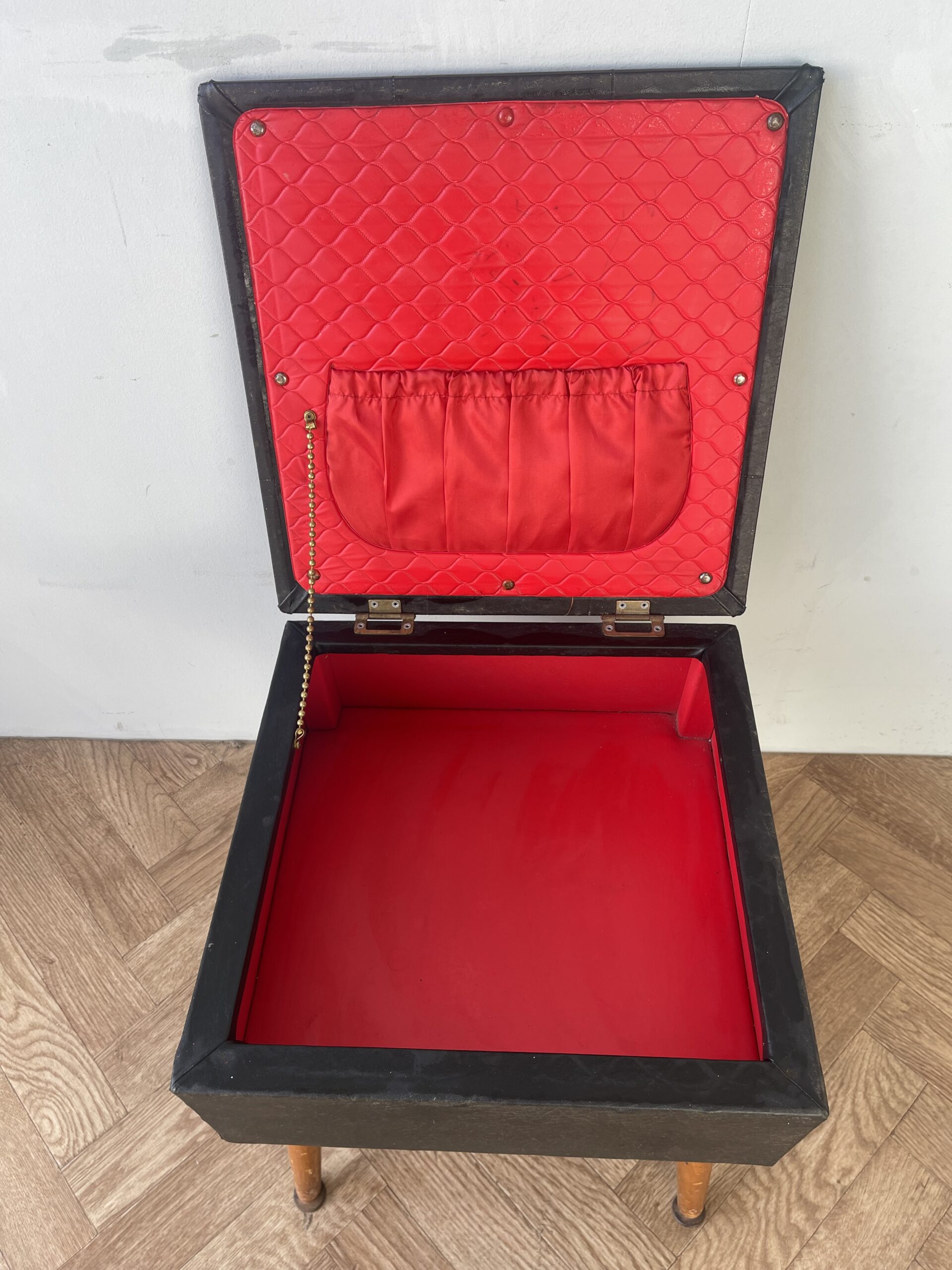 Vintage Black and Red Sewing Crafts Storage Box Stool