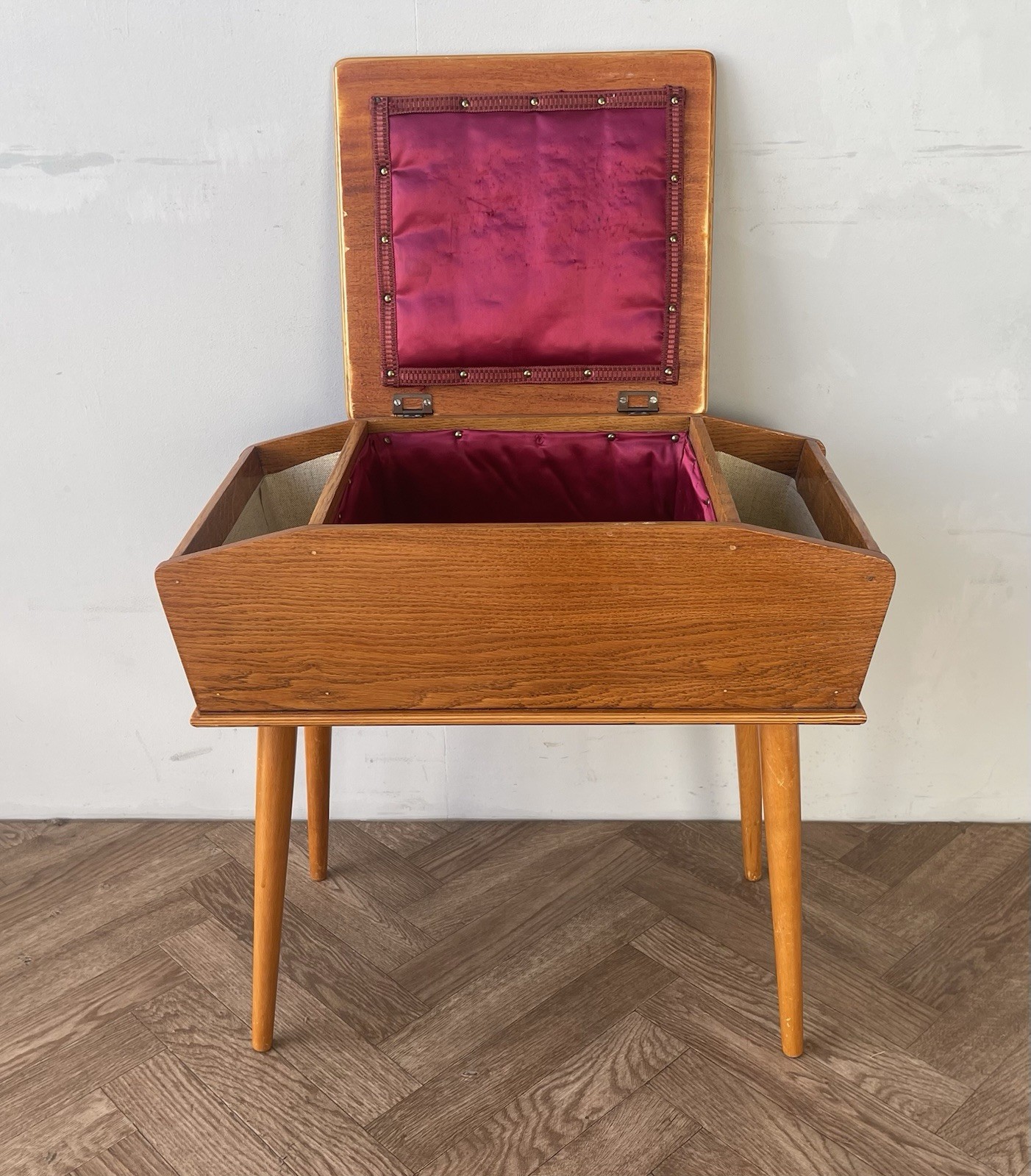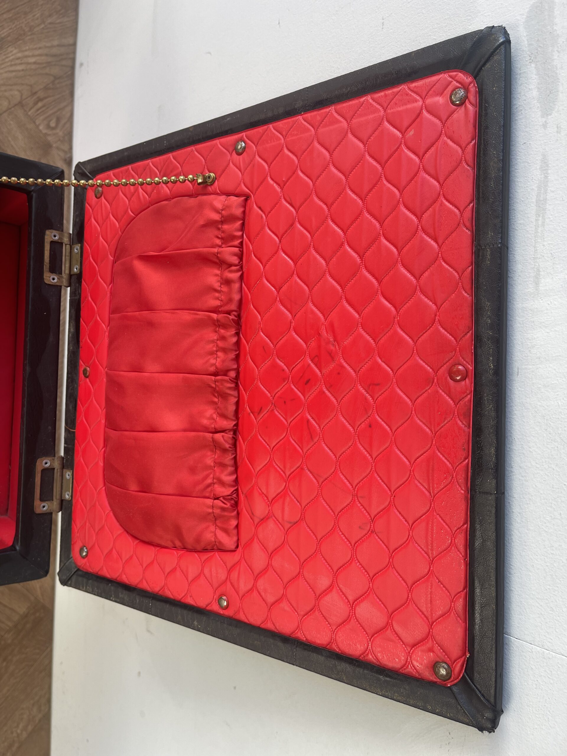 In good used vintage condition. There are signs of wear to be expected for the age, some marks and scratches and pin marks in the lining. Please see photos, these form part of the description.