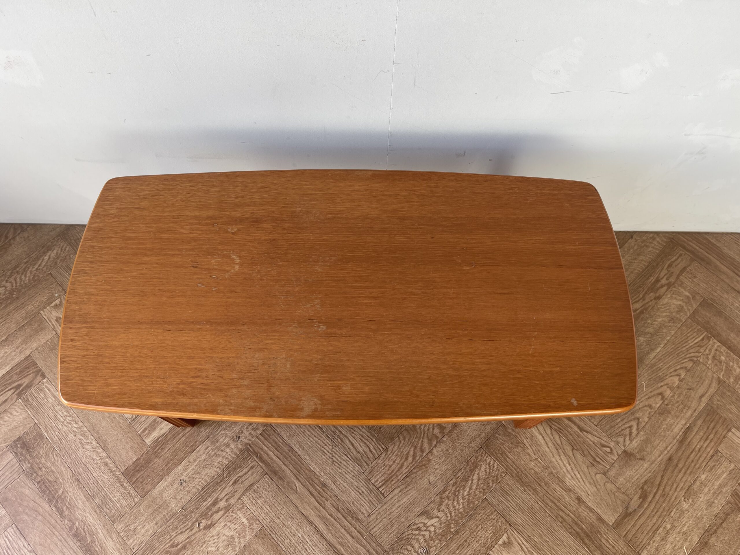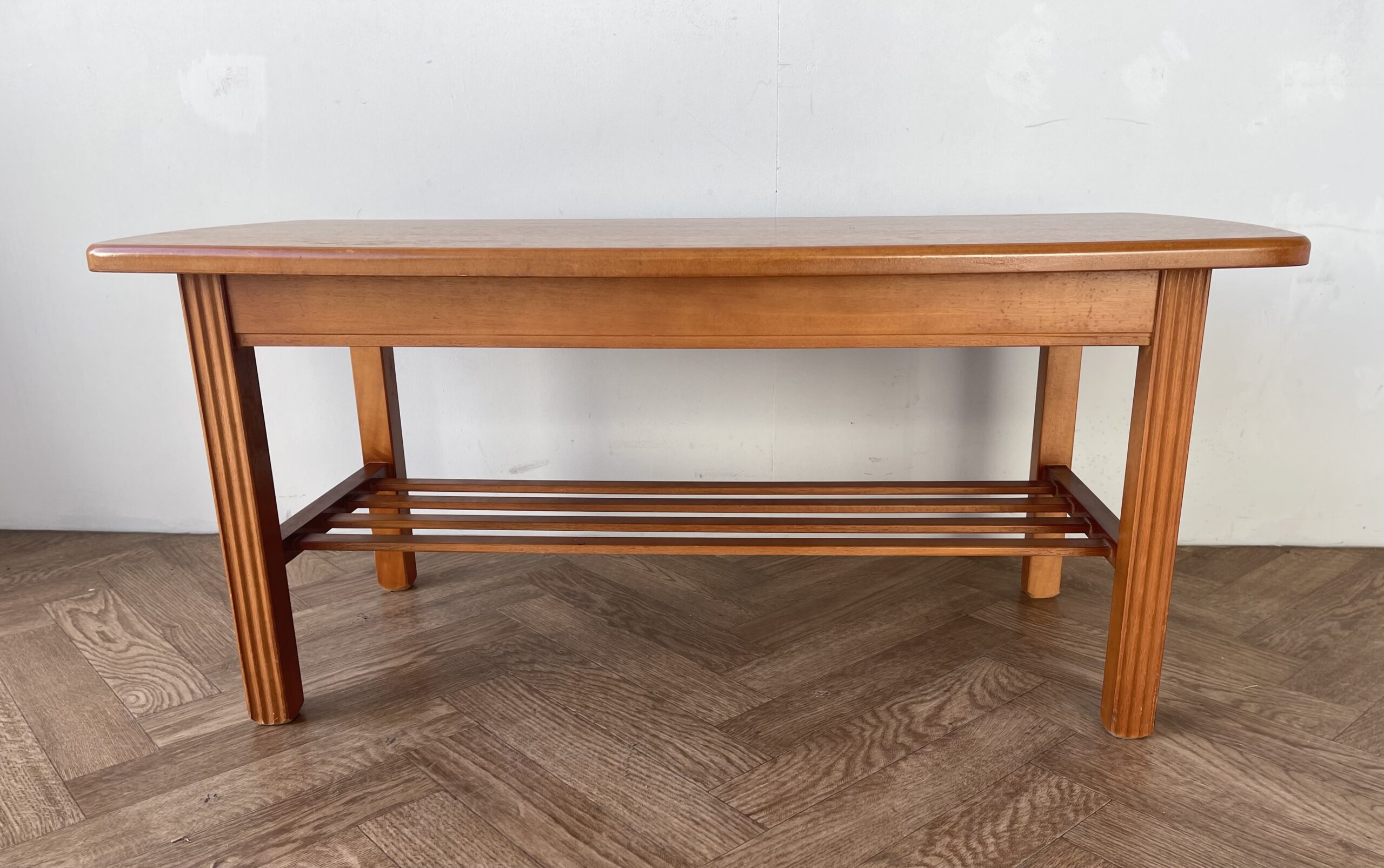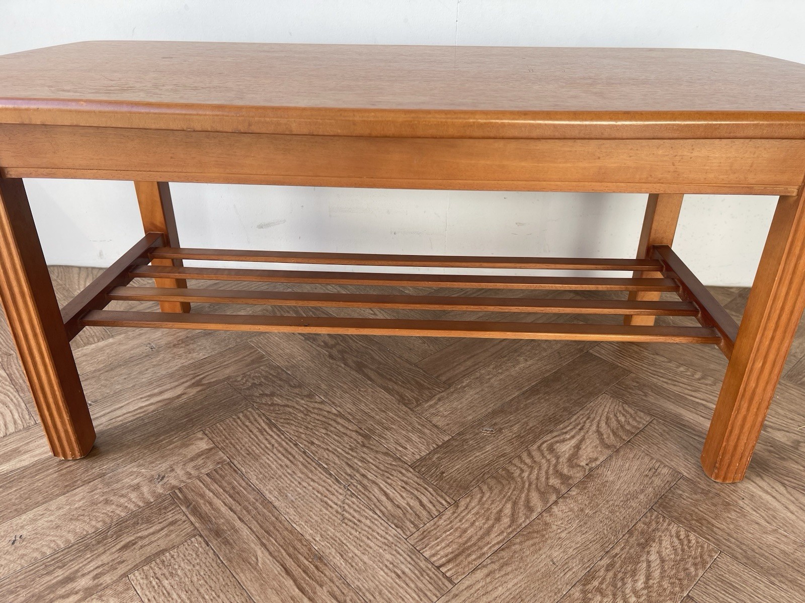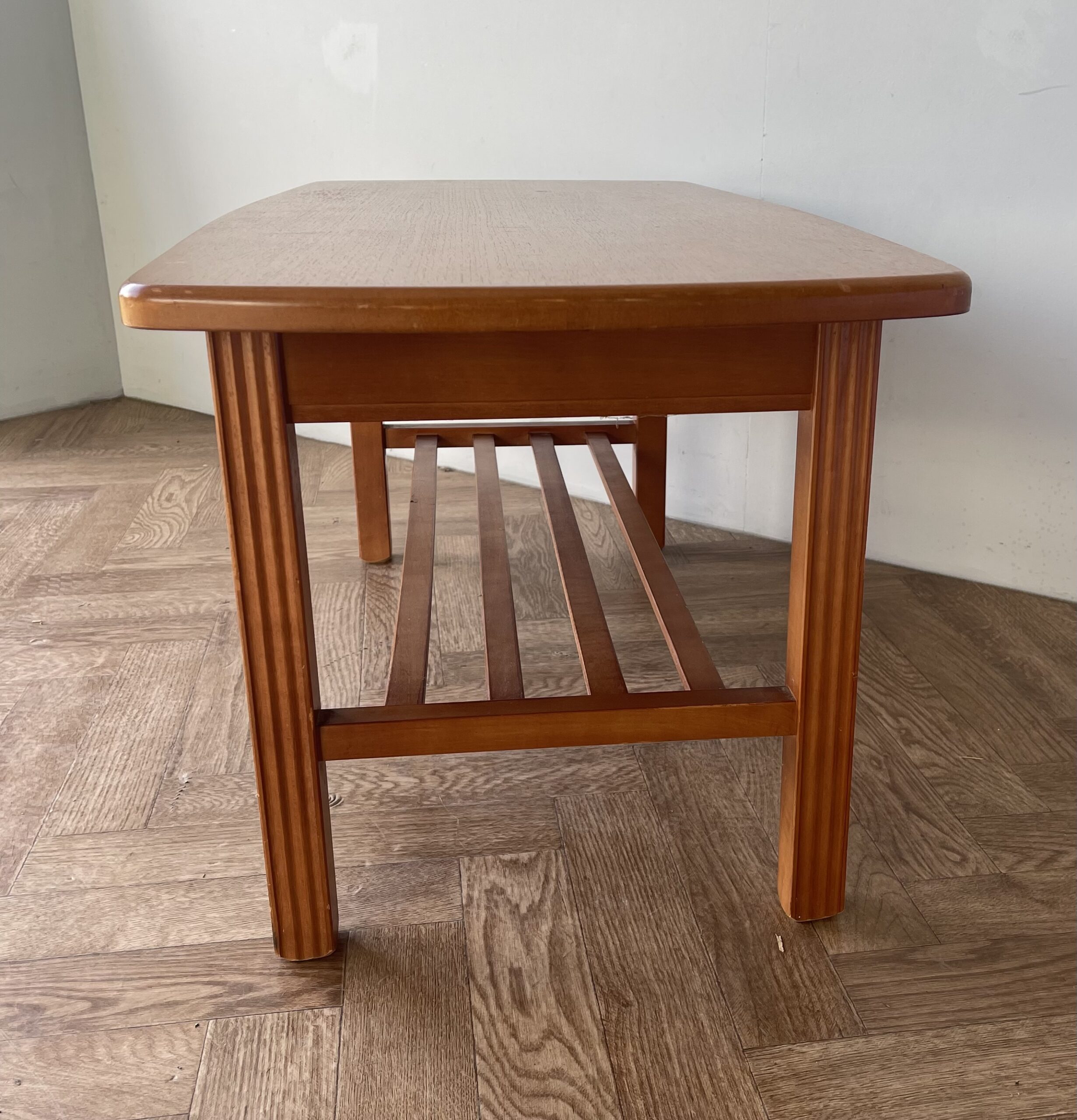 Vintage stylish large teak coffee table with shelf.
